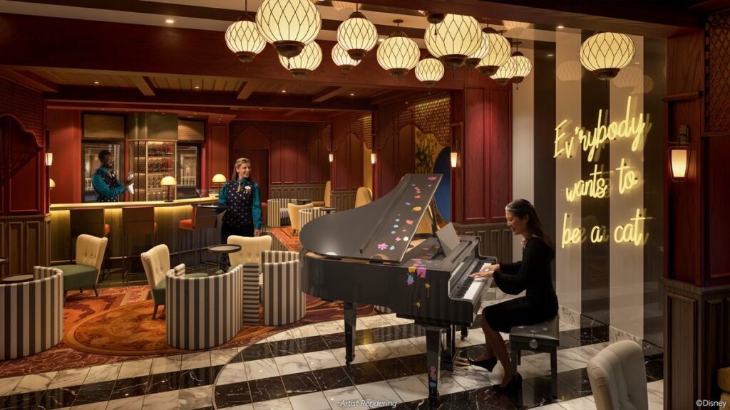 Published June 30, 2024 at 1024 × 576 in Disney Cruise Line reveals details about upcoming Disney Treasure and Adventure Scat Cat Lounge ‹ Return to post Leave a ReplyCancel reply